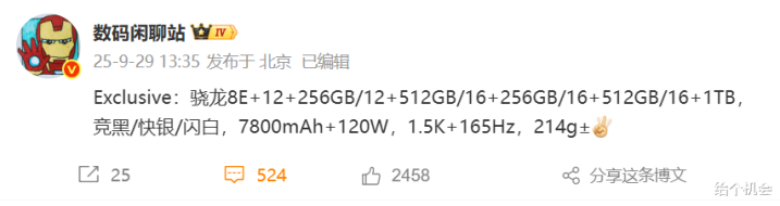 子系中端手机的发布时间大致明确,都会集中在10月下旬发布,先上市的是iqoo neo 11,然后是真我GT 8、红米k90,最后是一加ace 6,在11月之前都能上市,正好赶上双十一。