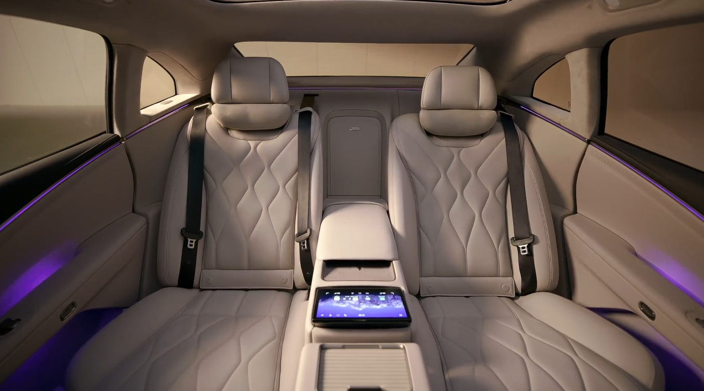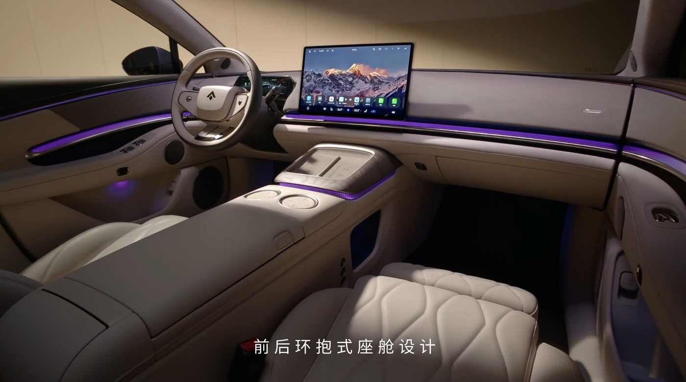 官方预热视频显示,广汽昊铂 A800 豪华轿车搭载鸿蒙座舱 HarmonySpace,采用前后环抱式座舱设计 + 无主灯式布局。新车后排扶手处提供触控屏,预计将支持车控等功能。