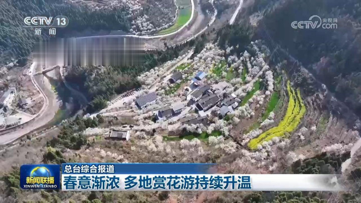 央视网消息(新闻联播):春意渐浓,我国多地赏花游持续升温,人们走进公园景区、乡村山野,感受生机勃勃的早春画卷。