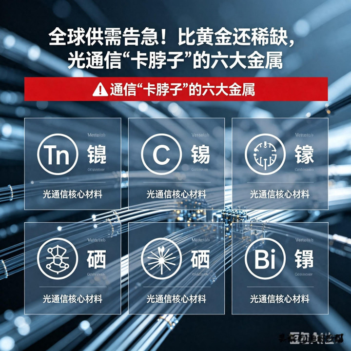 这六大金属,构成了光通信从光纤到芯片、从探测器到散热件最底层的骨架。但你翻一翻市场上的分析报告,有多少人真正在为这些原材料的供给安全担忧?