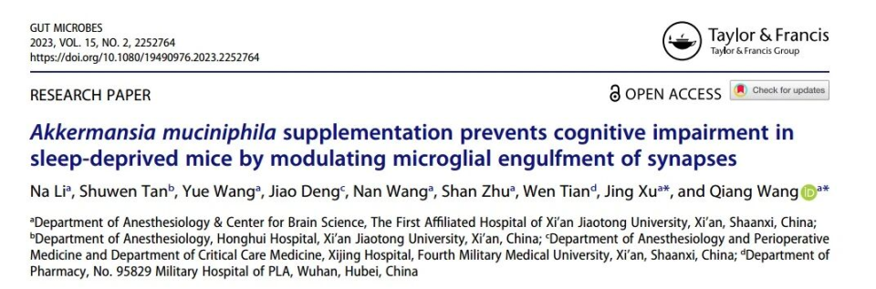 图注:交大第一附院团队发现AKK菌还能够改善睡眠不足引起的大脑认知功能受损