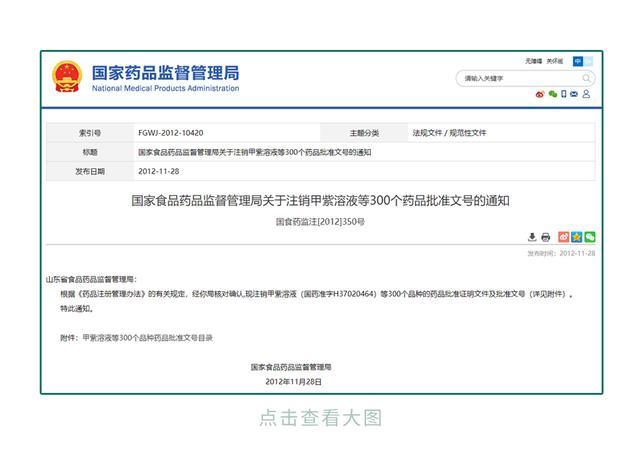 注销了紫药水的批准文号